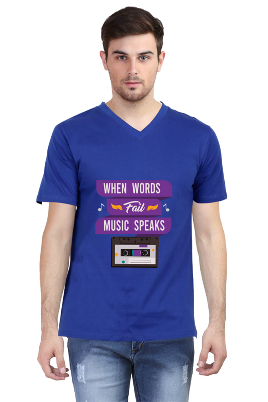 Men's V Neck T-Shirt - Music Speaks