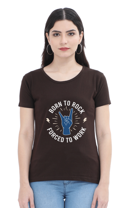 Women’s Round Neck Printed Music T-Shirts - Born to Rock