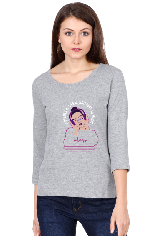 Women Music Full Sleeve T-Shirt - Beautiful Life