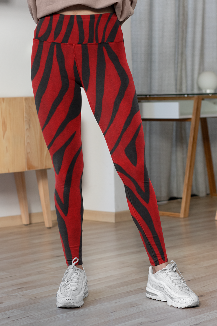 All Over Print High-Waist - Tiger Stripes Blood Red Leggings
