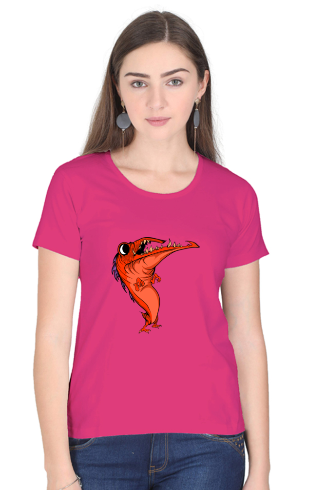 Women’s Round Neck Printed Animal's & Monster's T-Shirts - dancing monster