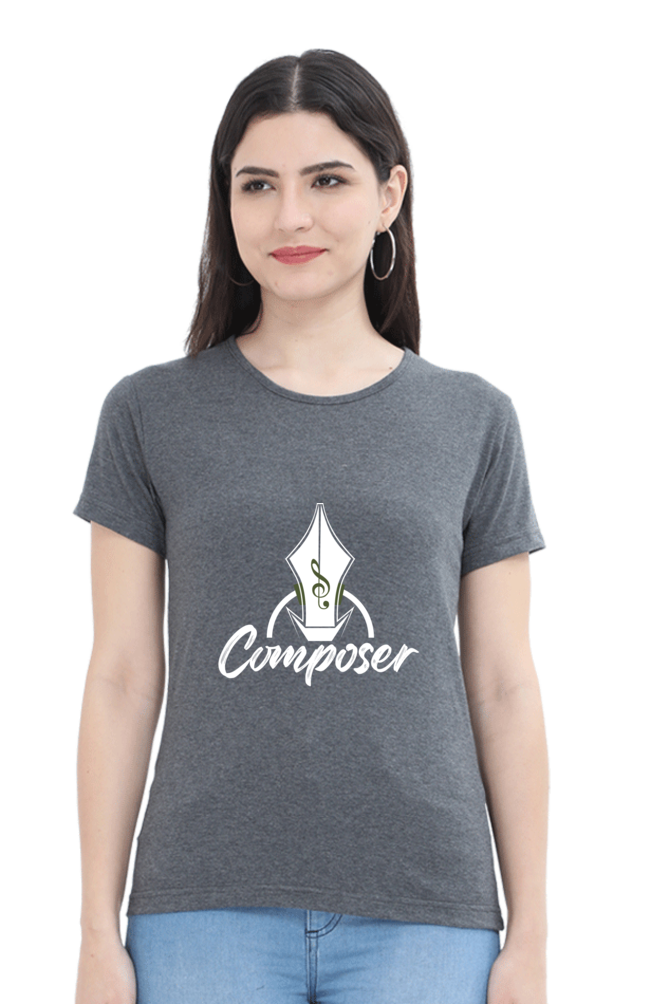 Women’s Round Neck Printed Music T-Shirts - Composer